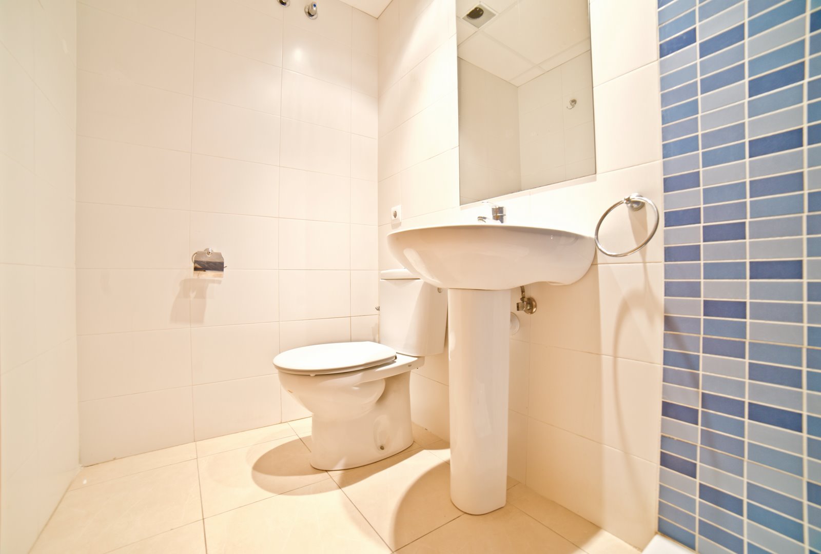 Das zweite Badezimmer bietet ein frischeres und dynamischeres Design mit Mosaikfliesen in Blau- und Weißtönen, sehr mediterran. Es ist mit einer Dusche (oder einem entsprechend vorbereiteten Platz gemäß der visuellen Aufteilung), WC und Waschbecken ausgestattet und funktioniert perfekt als Gästebad oder Bad für die sekundären Schlafzimmer, was die morgendlichen Routinen beschleunigt, wenn es alle eilig haben.
