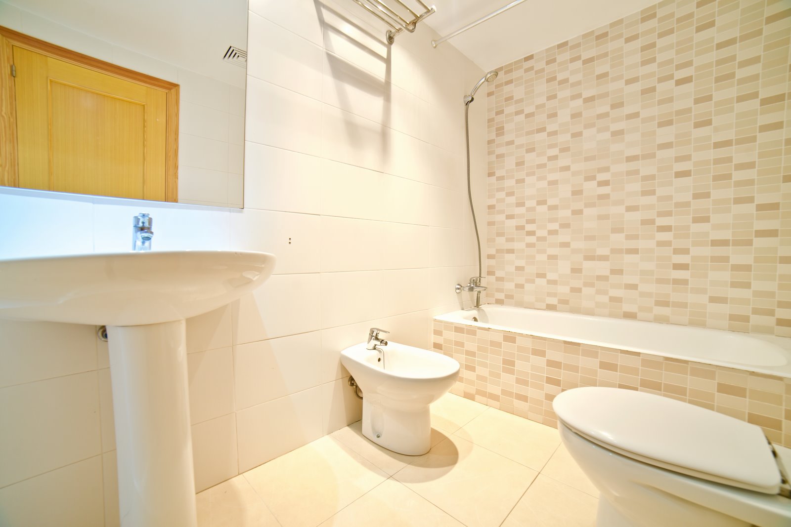 Die Immobilie verfügt über zwei komplette Badezimmer, eine unverzichtbare Anforderung für den Komfort einer modernen Familie oder für den Empfang von Besuchern. Das Hauptbadezimmer präsentiert sich als Raum der Entspannung, verkleidet mit Mosaikfliesen in Beige- und Erdtönen, die Natur und Ruhe evozieren. Es verfügt über eine Badewanne, perfekt für entspannende Bäder oder für die Pflege der Kleinsten, und einen großen eingebauten Spiegel, der das Licht vervielfacht.