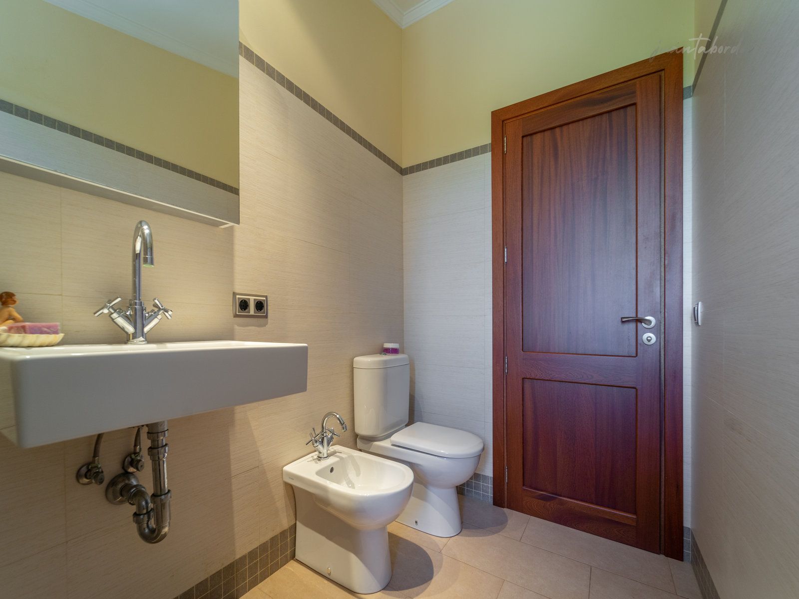 On the upper floor, we find 4 double bedrooms (all facing the outdoors) along with 2 full bathrooms. From 3 of these rooms, we can access the upper floor terraces. The house also has a large garage and the basement area for the machinery.