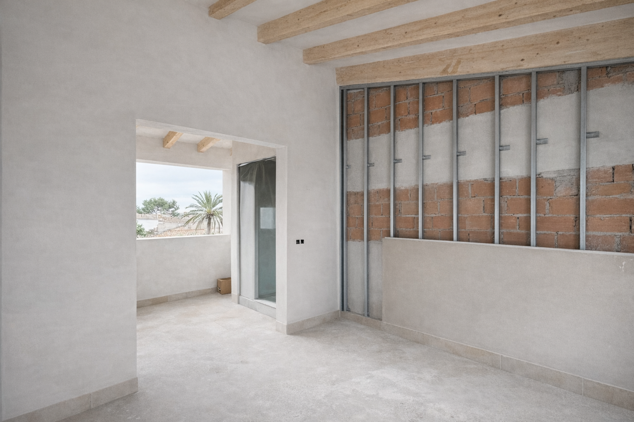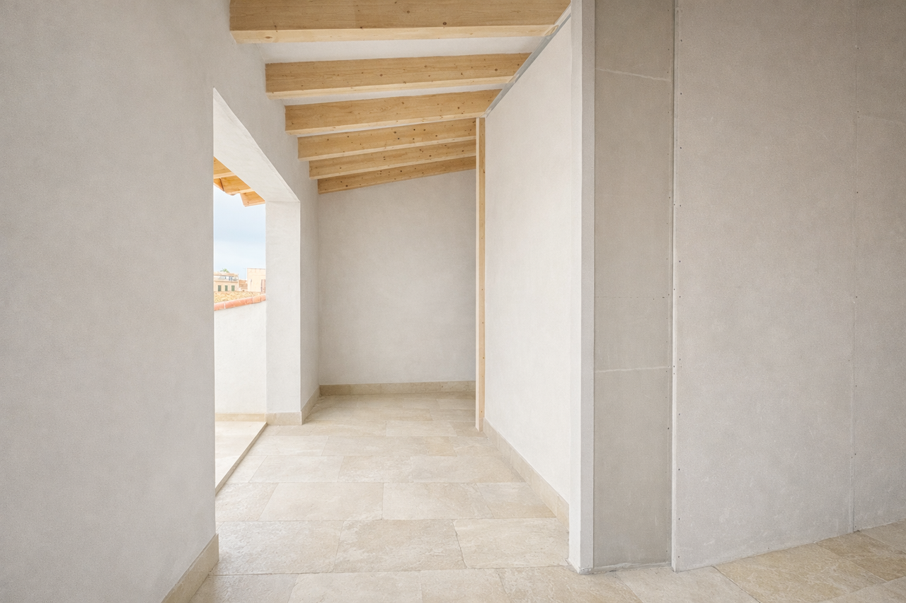 Uno de los puntos culminantes de esta propiedad es su terraza superior. Este espacio al aire libre ofrece privacidad y unas vistas privilegiadas sobre los tejados del pueblo, permitiendo disfrutar de los atardeceres dorados de Santanyí y sentir el pulso tranquilo de la localidad. Es el lugar perfecto para un desayuno tranquilo o una copa de vino bajo las estrellas.