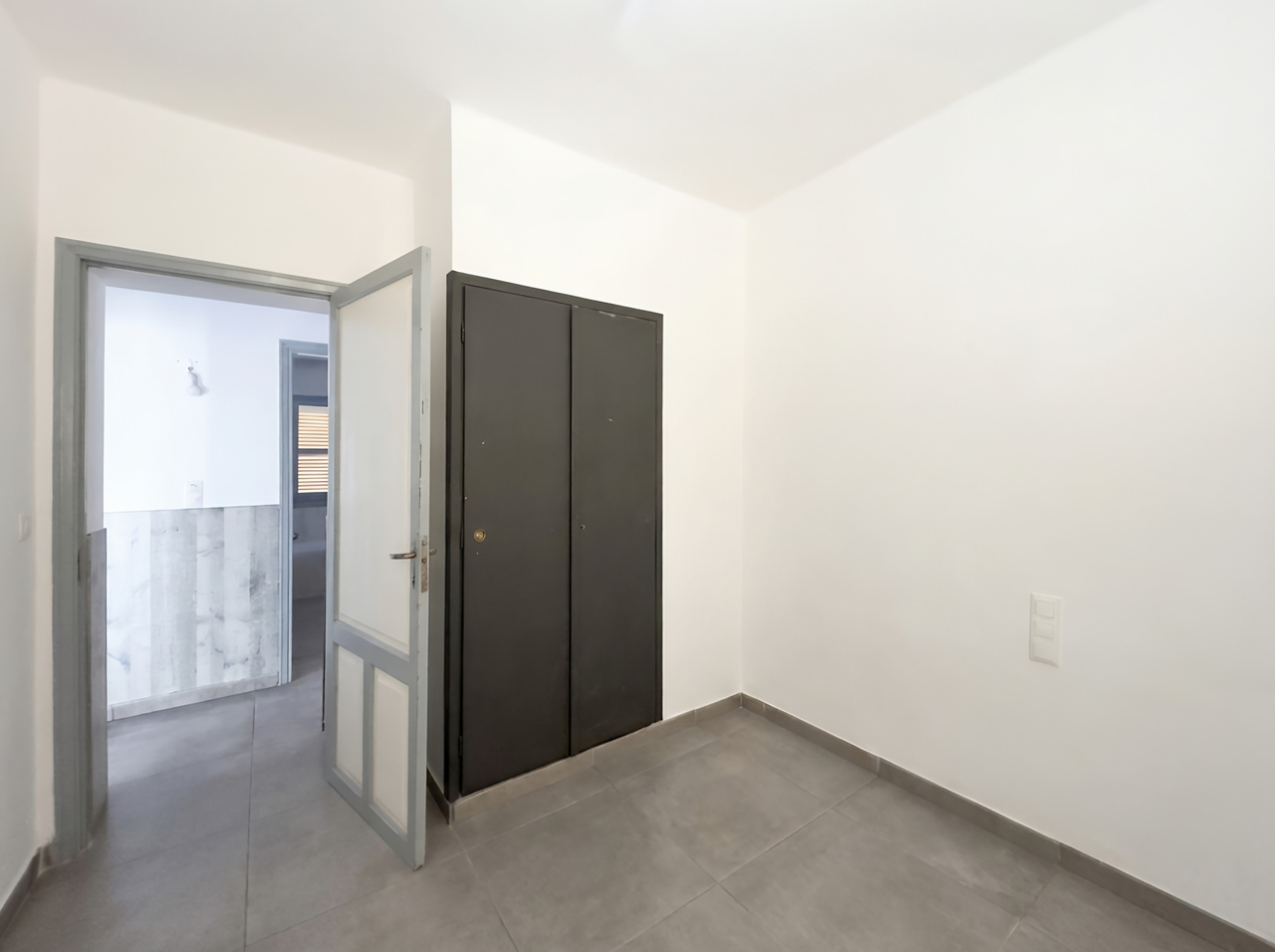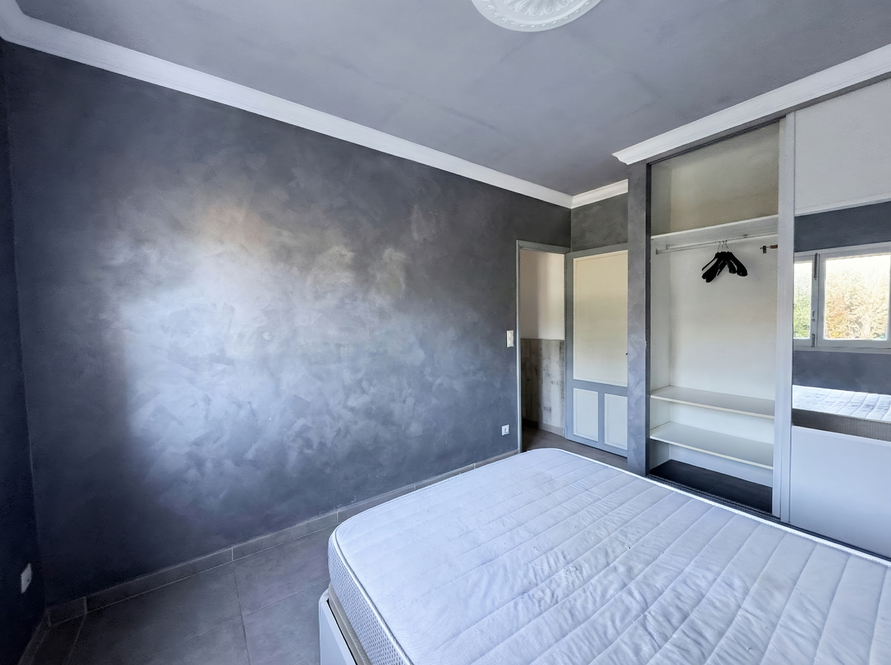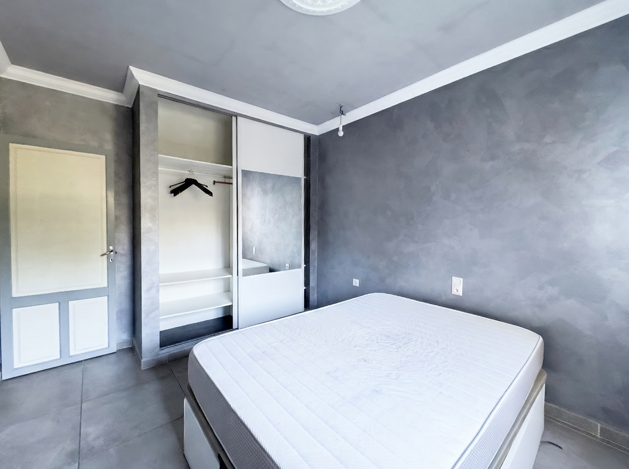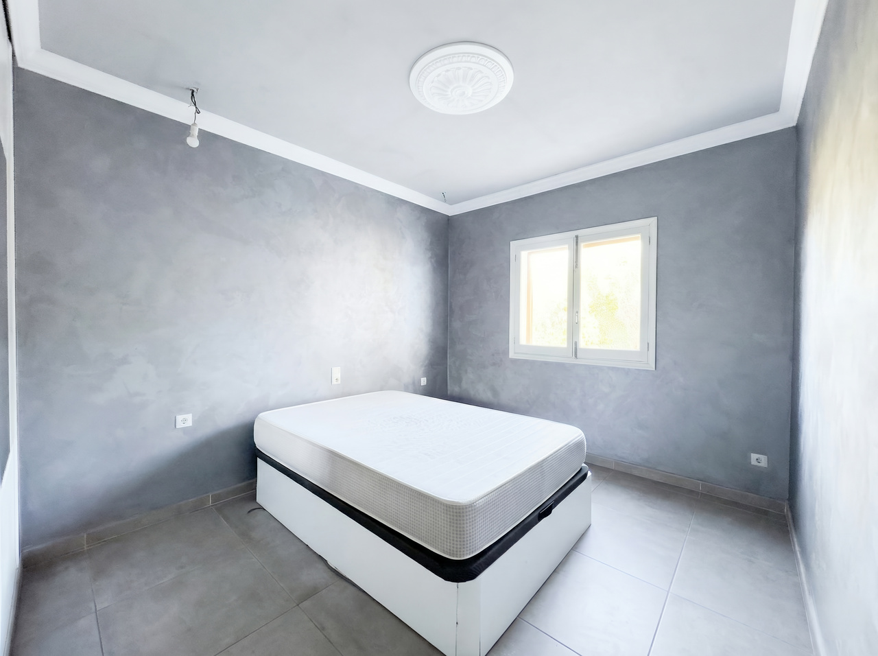 La propiedad dispone de cuatro habitaciones, una característica difícil de encontrar en el mercado de alquiler actual. Esta configuración ofrece una flexibilidad enorme: puede albergar a una familia numerosa o permitir destinar una de las estancias a despacho, cuarto de juegos o vestidor. Los dormitorios continúan con la estética cuidada de la vivienda. Algunos presentan las paredes con el elegante acabado gris estucado y suelos de gres gris de gran formato, aportando una sensación de continuidad y modernidad. Encontramos armarios empotrados con puertas correderas y espejos que maximizan la sensación de amplitud. Otras habitaciones, más luminosas y con paredes blancas, son ideales para los más pequeños o invitados.