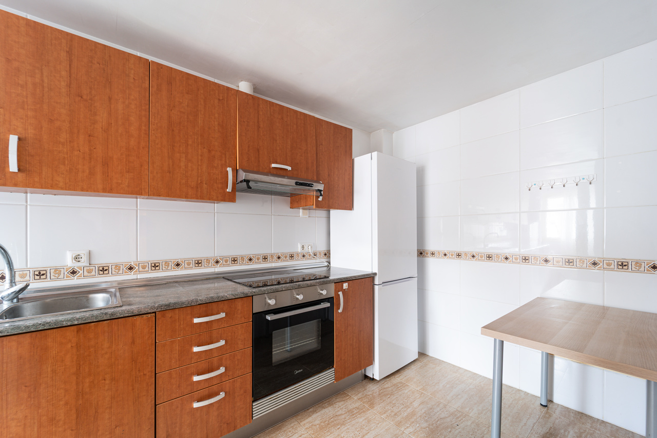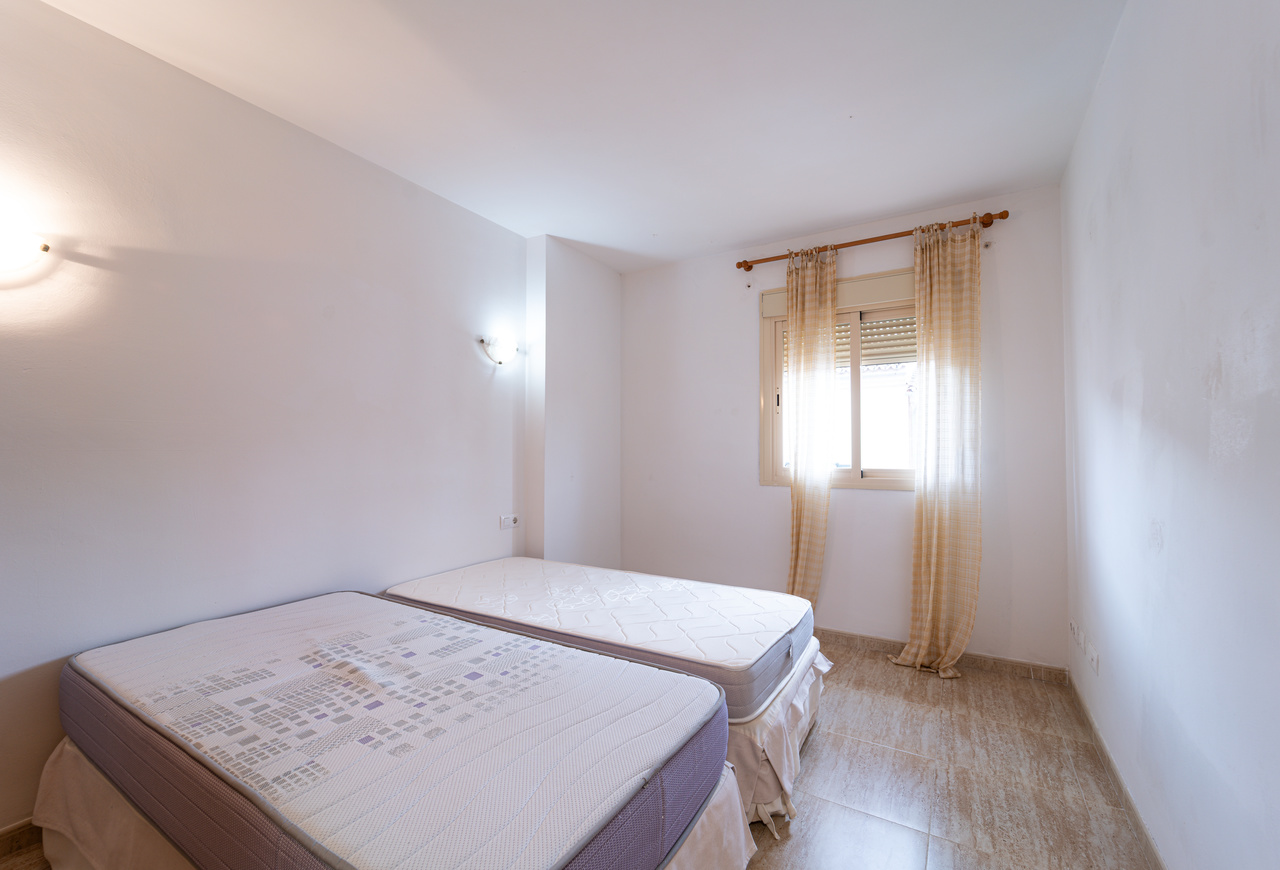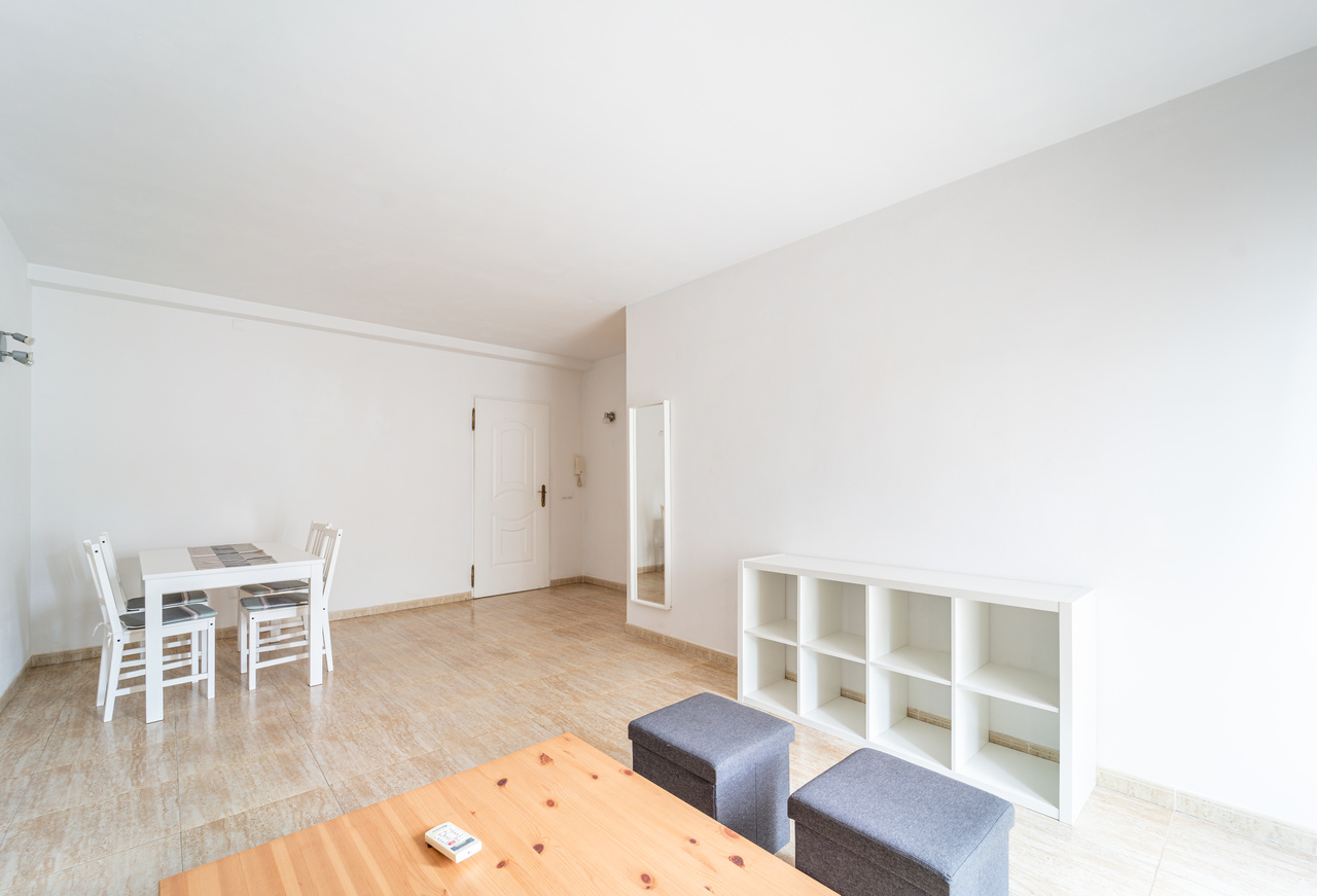 La distribución está pensada para el día a día. El corazón de la vivienda es el salón comedor, un espacio cómodo para la convivencia que, además, cuenta con aire acondicionado (frío/calor) para disfrutar de una temperatura agradable en cualquier estación. Desde aquí se accede al balcón, ideal para ventilar, desayunar al aire libre o simplemente tomar el sol suave de la mañana. Este desahogo exterior aporta amplitud y una conexión directa con el ambiente mediterráneo de Campos.